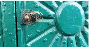 Ein Bild, das den nach einem Engelsflügel mit einem goldenen Kreuz gearbeiteten Türgriff der