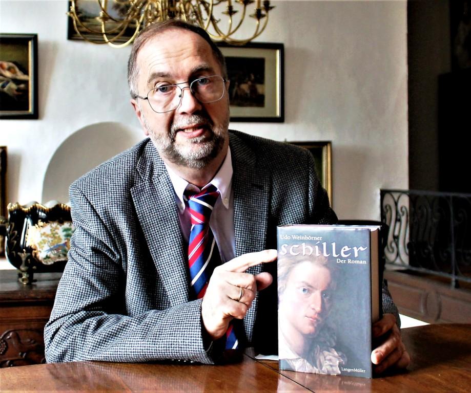 Autor_Weinbörner präsentiert_Erstfassung_des bei_Langen Müller, München, erschienenen_Romans_“Schiller“_beim_Interview_in