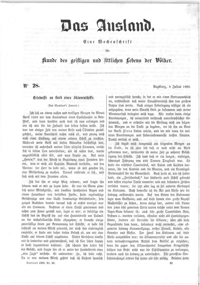 Salzprodukte verschiedenster Art auszuweiten, das Landesinnere zu erforschen und den Handelsbeziehungen zu den dortigen Königen und Negerstämmen zu treten. Da das Kapitel des Sklavenhandels historisch nicht die Mitwirkung und auch die Schuld von schwarzen Sklavenhändlern und Gebietskönigen und Fürsten verschiedener afrikanischer Stämme aussparen kann, sondern vielmehr die grausame Verzahnung von Macht und Kriegstreiben auf dem schwarzen Kontinent und dem Herrenmenschendenken weißer Sklavenhändler zum Gegenstand haben muss, habe ich dieses Kapitel genutzt, einen Ausflug in die damals unerforschte Gegend des ‘Rio Volta’ und eine Begegnung zwischen Weiß und Schwarz zu diesem Zweck erzählend zu ermöglichen. Dazu habe ich auch auf verschiedene zeitgenössische Dokumente und Aussagen von Schwarzen, wie beispielsweise dem König von Dahomy über den Sklavenhandel zurückgegriffen und sie zum Gegenstand der Handlung werden lassen (s.a. Catharina Lüden und die in der Bibliographie aufgeführten Schriften der Bundeszentrale für politische Bildung).